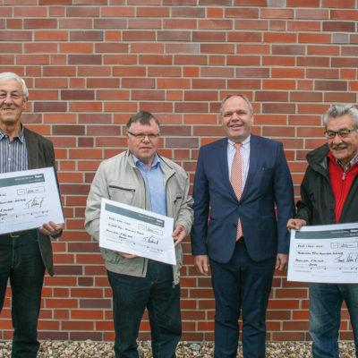 Willi Reintjes (Bürgerbus Mehrhoog), Diakon Heinz Grunden (Essen auf Rädern), Thomas Krönert (Hähnlein & Krönert) und Manfred Winter (Förderverein Freiwillige Feuerwehr Mehrhoog)